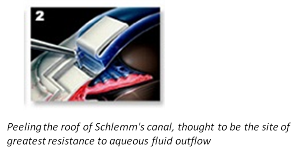 The following series of illustrations shows the sequence of the trabeculetomy surgical procedure.
